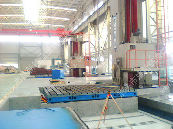 本產品是為齊二機床廠配套的落地鏜銑床平臺。落地鏜床工作臺是機床工作臺的一種,主要用于機床加工工作平面的使用,上面有孔和T型槽,用來固定工件和清理加工時產生的鐵屑,在工業生產中獲得廣泛應用。